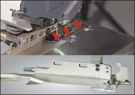 第三光眼设计在剪刀后面,防止切刀现象,使剪线更准确,稳定,对斜边布料的缝制也是非常适用。
